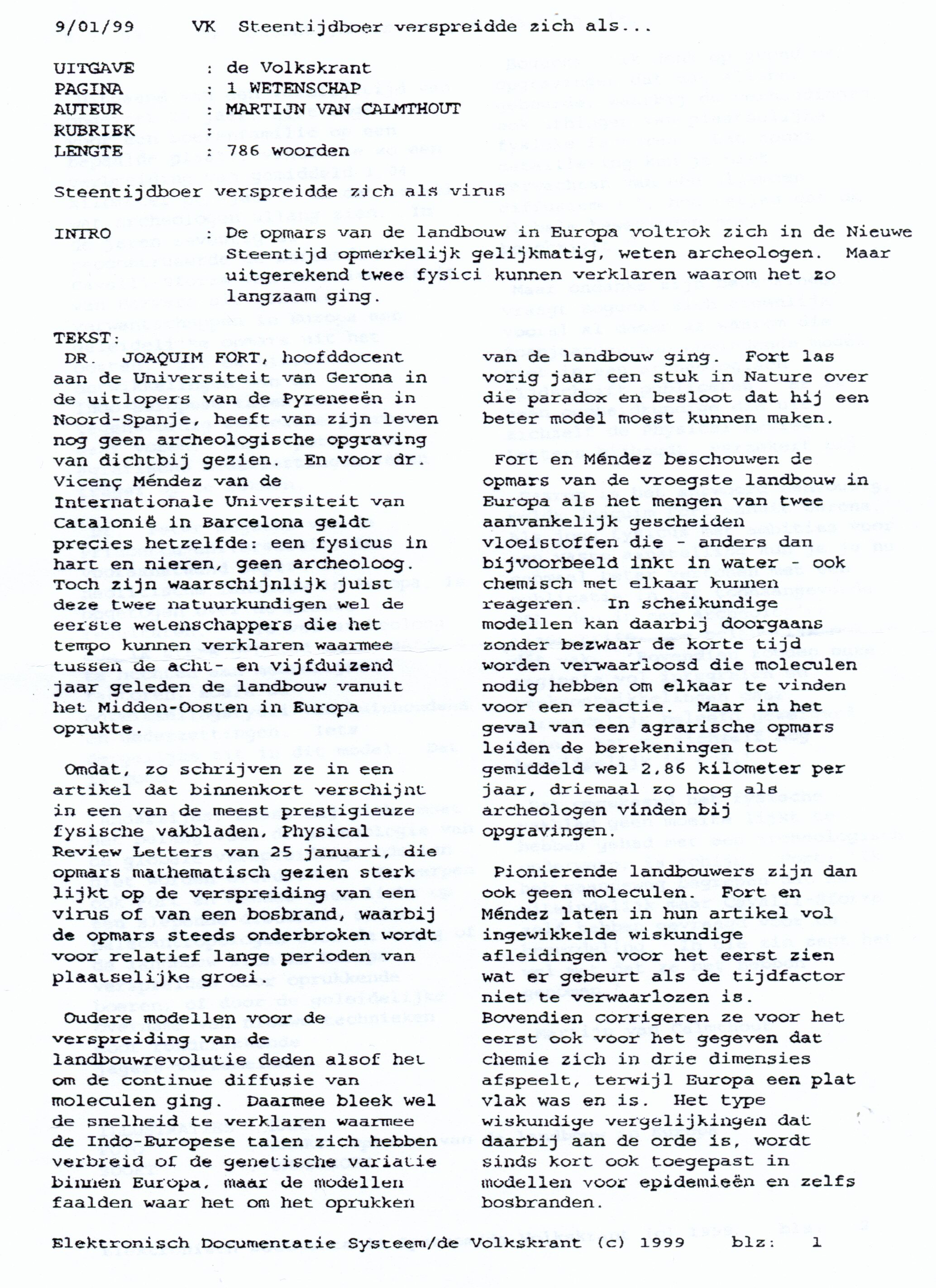 Original text (in Dutch) of the article appeared in the newspaper de Volkstrant (Amsterdam)